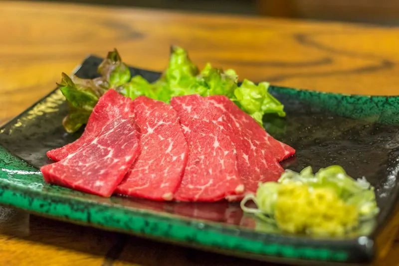 If you ever had a horse or even just like the idea of horses this one just might not be for you, Basashi is raw horse meat served sashimi style with soy sauce and ginger. Quite commonly enjoyed in Japan.