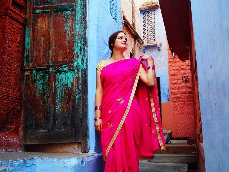 Indian women dress in modest and colorful clothing, taking great care not to expose too much skin no matter how humid the climate may be.