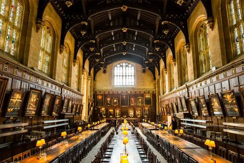 The grand dining hall of Christ Church college was used as Hogwarts Dining Hall. You can visit the Great Hall in the Warner Bros. studio tour. The scene where professor McGonagall met the first years when they arrived at Hogwarts was filmed at the 16th-century staircase at Oxford University.